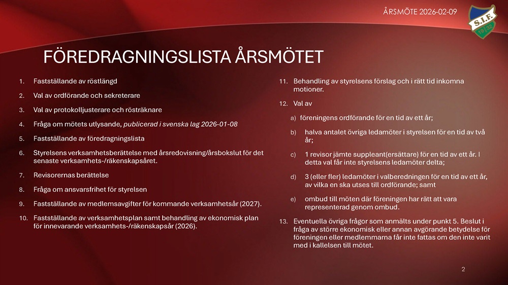 Välkomna till årsmötet för Sturefors IF måndag den 9/2